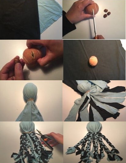 - Klip det løse stof i tykke strimler.